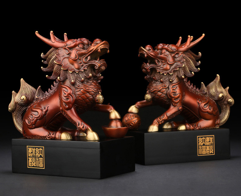 純銅彩《祥瑞麒麟》擺件 銅工藝品家居飾品一對擺設(shè)0402